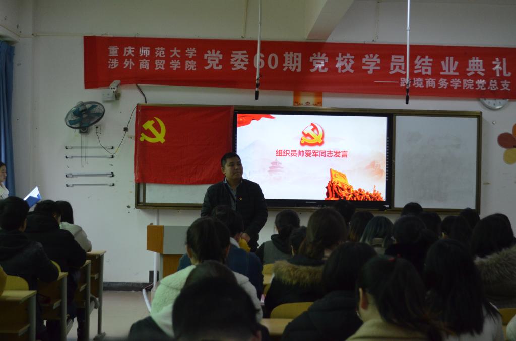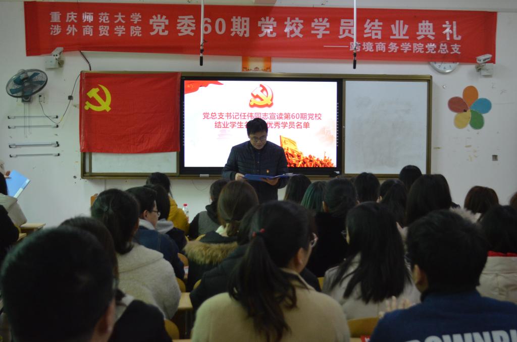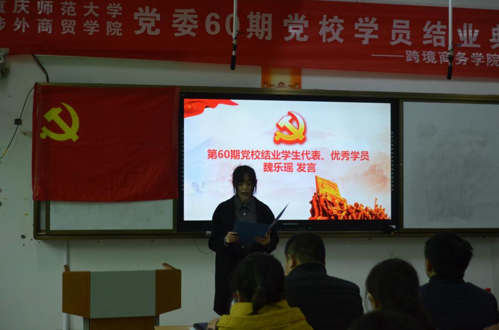 结业典礼在雄壮的歌声中拉开帷幕。首先由公司党总支书记任伟同志致辞并宣读《重师商公司党委60期党校beat平台结业名单》及优秀学员名单。任书记勉励结业学员把党校学习内容内化于心、外化于行、固化于规,用实际行动争取早日入党。
