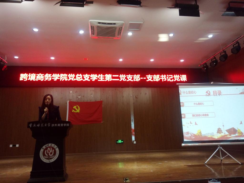 活动在嘹亮的《没有共产党就没有新中国》中拉开帷幕。首先,员工二支部书记王玥极同志以“不忘初心 牢记使命”为主题,扩展“初心”寓意,旨在教育同学们不忘入党初心,坚定理想信念,为中共共产党的发展贡献自己的青春力量!其次,员工二支部员工党员代表谭兰芳同志,与同学们分享自己入党的心路历程,利于激发同学们的认同感、共鸣感、使命感,增强同学们对中国共产党的热爱!