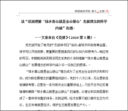 同时支部同志们联系自身实际,对阅读心得进行撰写,在阅读中激发出的感悟流淌在文字中。大家纷纷表示,要以实际行动,切实从思想上向优向前向上看齐,成为一名合格优秀的共产党员。