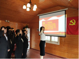 本次活动由员工一支部党员胡雅雯同志主持,活动在庄严肃穆的《国际歌》中正式开始。首先由刘坤奇同志宣读了本次参加宣誓的新党员名单,在支部书记廖婷婷的带领下,24名新入党的同志面向党旗进行了庄严的宣誓,对于新党员,这是关荣而又神圣的时刻。