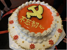 接下来,活动进入第二个环节,为党员过政治生日。刘坤奇同志代表党组织向易川等五名同志送上了生日贺卡并寄语,希望每一位党员同志能够不忘初心,牢记使命,永葆共产党员的先进性和纯洁性。党员代表陈赛蓝同志发表了感言,表示非常感谢党组织为自己过的这次有温度的政治生日,自己能成为一名党员感到无比光荣与自豪,同时也表明自己会认真对照党员标准,查找自己的差距和不足,不断提升自己的政治修养,进一步发挥好党员的先锋模范作用。