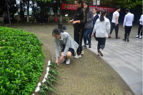 瑞山苍苍,嘉水泱泱,烈士伟绩,百代流芳,在庄肃的环境中,随着台阶步步向上,同志们来到了烈士纪念碑前,为革命烈士献花并默哀一分钟,以表对革命先烈的深切哀悼和崇高敬意。