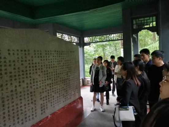 进入人民公园,在党员胡雅雯同志的引领下,大家参观了已经被确定为“重庆市抗战遗址”的合川区国立二中纪念亭,抗日战争中的合川区国立二中为国家培养了一批又一批优秀的人才,为抗日战争的胜利做出贡献。