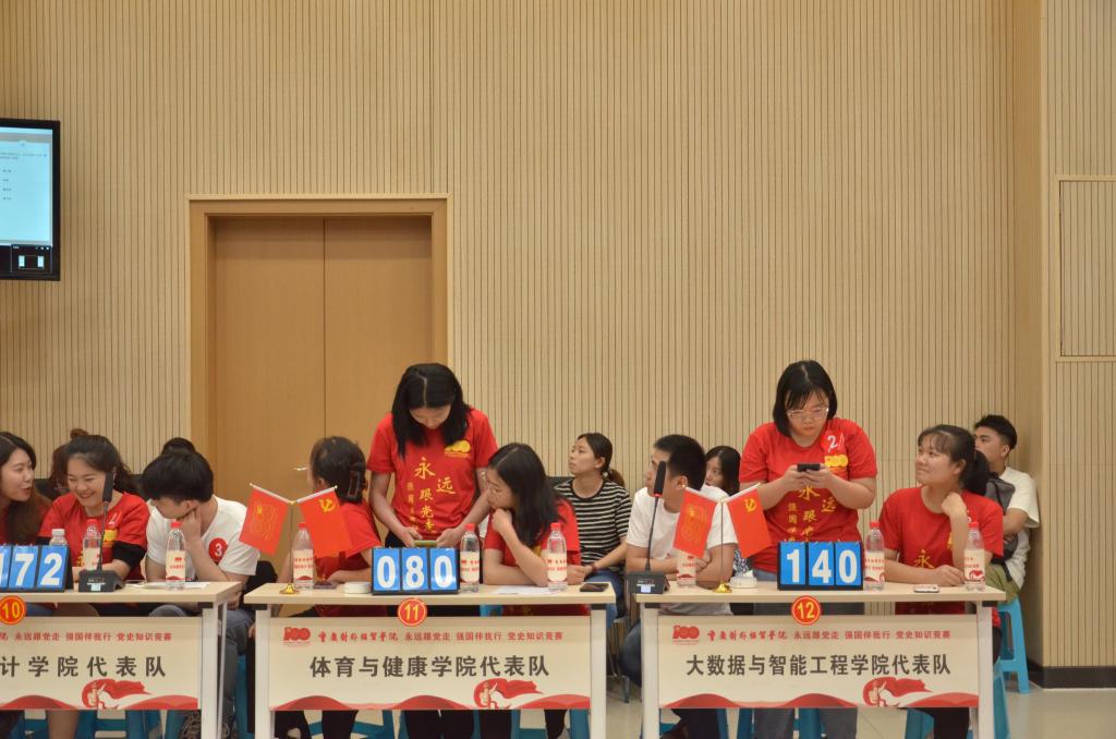 beat官网“永远跟党走 强国伴我行”党史知识竞赛由中共beat官网委员会主办,总支承办,经过前期队伍选拔、理论测试,来自机关、外语外贸学院、beat平台、文学与创意传播学院、数学与计算机学院、管理学院、艺术设计学院、影视融媒体学院、大数据与智能工程学院、音乐舞蹈学院、学前教育学院、体育与健康学院的12支队伍、36名选手脱颖而出,站在了比赛现场。
