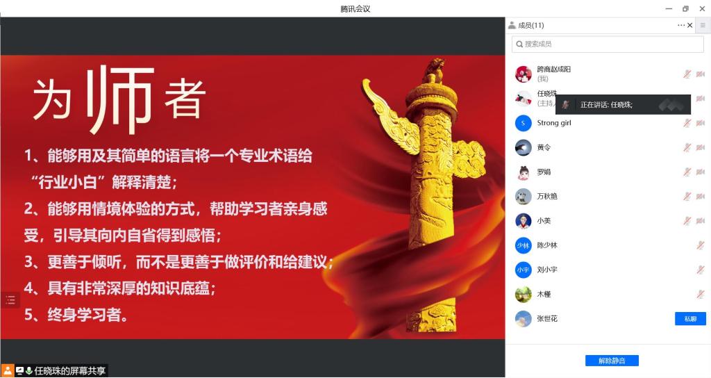 在会议上支部书记任晓珠同志指出,作为青年教师应该做到终身学习,具有深厚的知识底蕴,并能够深入浅出的传授知识,引导员工向内自省得到感悟。