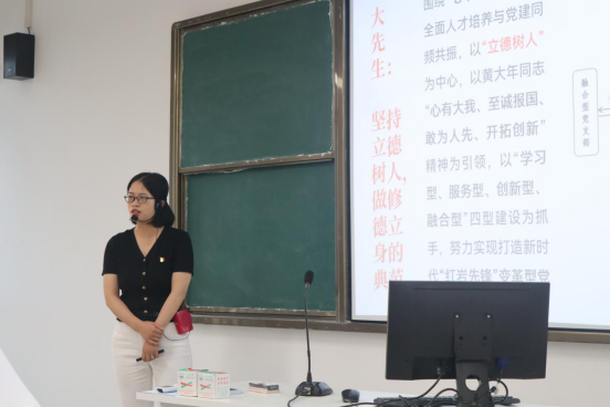 比赛开始,首先教工一支部书记任晓珠宣讲的主题是“做大先生:铸师德之魂,绽师风之美”,呼吁广大教师在新时代下要以思想政治素质作为加强师德师风建设的根本底线。