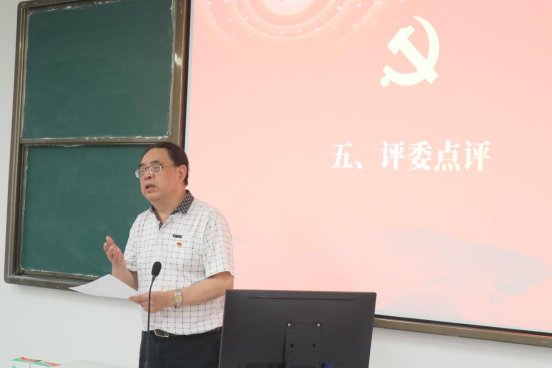 最后,教工二支部书记吴文平以“怀三感,建三风,以学增智”为题,鼓励教师党员做到提升政治能力、提升思维能力、提升实践能力。以姜丽娟女士救助失学、失足青年的感人事迹为例,表达了对员工、对教育的爱。经过五个支部书记的精彩宣讲,最终员工二支部书记段瑞获得第一名。