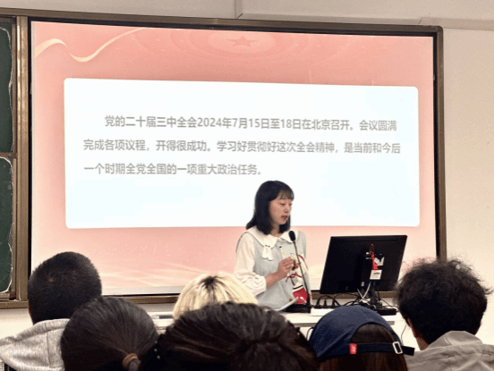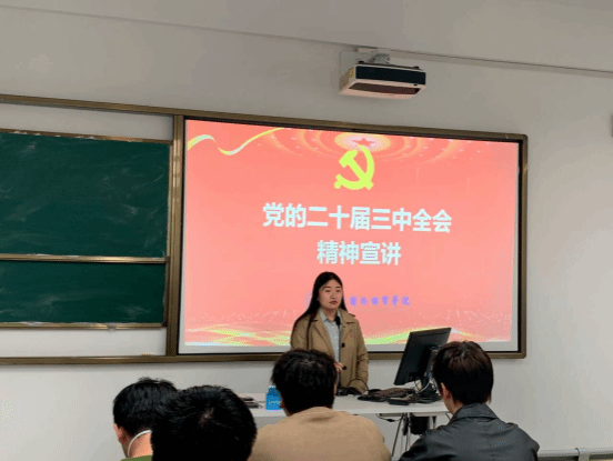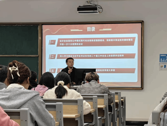 为深入学习宣传贯彻党的二十届三中全会精神,积极响应上级党组织的号召,公司高度重视,迅速行动,组建了专门的宣讲团队,制定了详尽的宣讲计划,并于10月20日分组分批次开展了党的二十届三中全会精神集中宣讲。宣讲队面向学院师生,结合学院实际情况,从四个方面进行了深入浅出的讲解。