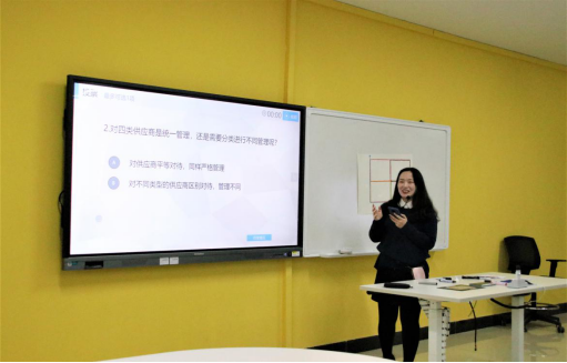 为贯彻全国教育大会和新时代全国高等学校本科教育工作会议精神,全面落实学校课堂教学提振计划,推进特色学院建设工作,推动课堂教学革命,按照特色学院建设相关工作部署和要求,beat平台于2019年11月28日在9513与9515开展了特色学院特色建设——“教师强起来”之教师课堂教学大赛。beat平台副经理赵逖、党总支书记任伟、副经理李艳出席活动并担任评委,同时还邀请学院学术委员会专家甘强教授、青虹宏教授、向敏教授、曾芳芳副教授、谢世飞副教授、江晓涛副教授、高级经济师冉隆文以及员工代表担任评委,公司十一名任课教师与辅导员参与讲课,学院全体教师及部分员工代表观看比赛。