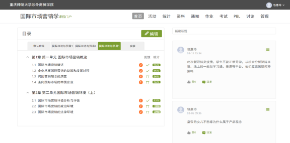 1.包惠玲老师在讲授《国际市场营销学》时,将时事和专业知识相结合,抛出话题讨论,有利于提高员工发现问题、解决问题的能力。