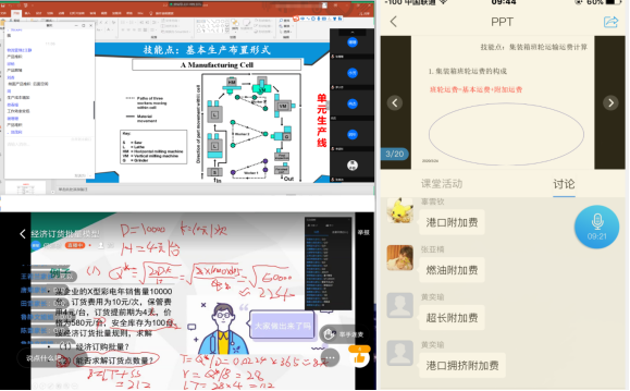 beat平台线上教学采取按照专业必修课、专业选修课、在线实践课程的顺序分批开课,留足够的时间给任课教师准备相关的教学资源。截止目前,学院线上开课85门,占本学期总课程门数的85%,参与教师56名,其中必修课37门,选修课48门,实践课程5门。学院主要利用线上教学平台以超星学习通为主,QQ、钉钉、腾讯课堂等为辅,采取网络自主学习、线上线下混合式教学、翻转课堂、直播授课等方式开展教学活动。任课教师课前准备充分,课上师生互动有效,教学秩序良好。员工学习积极性较高,平均出勤率达到95%以上,课堂学习氛围浓厚且效率高。
