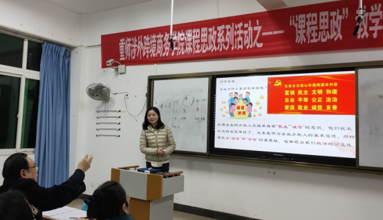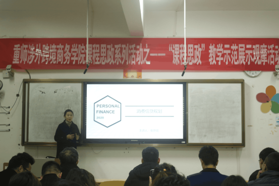 每位教师讲课结束后,到场的专家评委、辅导员进行了精彩的点评。谢世飞教授指出“课程思政”教育就是要在课程教学中融入思政元素,不能太刻意、古板,因课程性质及课程培养目标,有选择性、有计划性、自然引入的进行思政教育。比如针对失业问题探讨,可从四个层面进行:一是以具体人物为例,讲述职业精神;二是以“立德树人”根本任务,教育员工做人;三是以经济学学者身份解释国家政策;四是,热爱国家,上升爱国情怀教育。针对个人信贷,在讲述校园贷弊端的同时,引入正规金融机构信贷讲解,直接进行信贷知识教育。江晓涛副教授也指出,思政教育应该是“润物细无声”,自然引入,自然而然的培养员工的道德品质和个人情操。