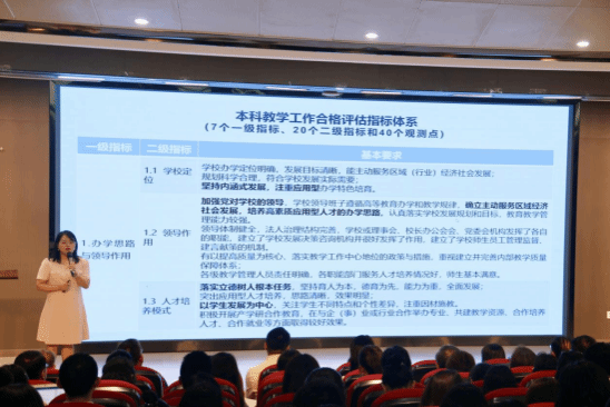 紧接着,学院教学经理李艳解读了《本科教学工作合格评估实施方案》。她详细阐述了评估的目标、标准以及当前学院在各方面存在的问题,为接下来的工作指明了方向。李艳经理强调,全体教师要深入理解评估要求,严格按照评估标准开展教学工作。