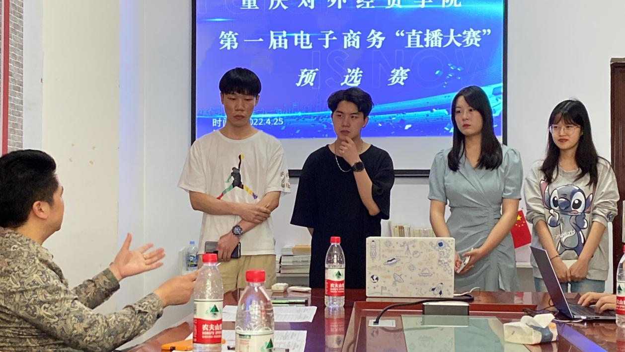 beat官网第一届电子商务“直播带货”大赛预选赛于4月25日顺利举行。本次预选赛特邀重庆雀小萌文化传媒有限公司总经理黄礼、beat平台办公室主任刘坤奇、学工办主任陈小林、合川区特色旅游与电子商务研究基地讲师杨桢、电子商务教师姜维担任评委。共19支团队参加了比赛。