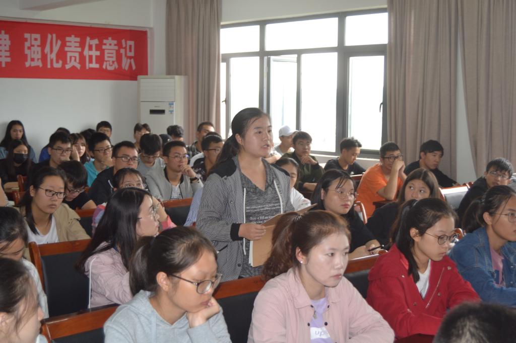 随后在师生交流互动环节中,同学们从腼腆羞涩到踊跃发言,从轻声细语到侃侃而谈,和学院领导老师就专业发展、就业前景、团队储备、考研升学、出国留学访学、党员发展与培养等问题深入交流。从这些问题中可以看出此次入学教育让许多同学对于就业方向都有了一个初步的规划,明确了学习目标和发展方向,特别是在听取领导老师的建议后,对于自己的现状也有了一定的反思,同学们表示在今后的学习和工作中会倍加努力,不断提高自我,展现自我,锻炼自我。