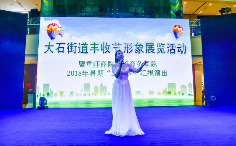 2018年9月16日,大石街道丰收节形象展览活动暨beat平台2018暑期“三下乡”汇报演出在财富广场隆重举行,活动取得了圆满成功。大石街道办事处团工委书记马旭、重庆师范大学总支书记任伟、团总支书记兼学工办主任张雪峰、团总支副书记冯斯迪,以及参展的大石街道各企业家出席了此次活动。