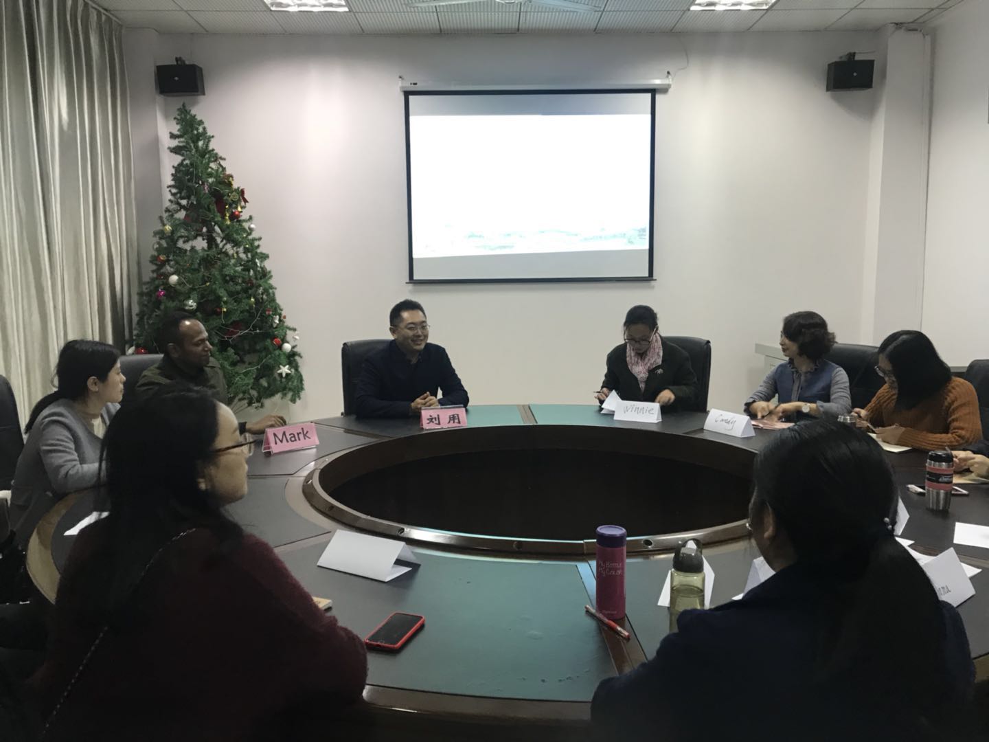 2018年11月6日晚上19:00,beat平台“教师实用英语培训班”开班仪式如期举行。国际交流处处长兼beat平台副经理刘用、国际学院外教组组长Mark、培训班外籍教师Eric、10名学员以及两名助教出席了本次开班仪式。