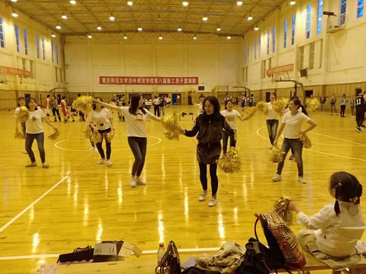 比赛开始前,学院工会组织教师精心编排了啦啦操,赢得在场运动员的阵阵掌声。