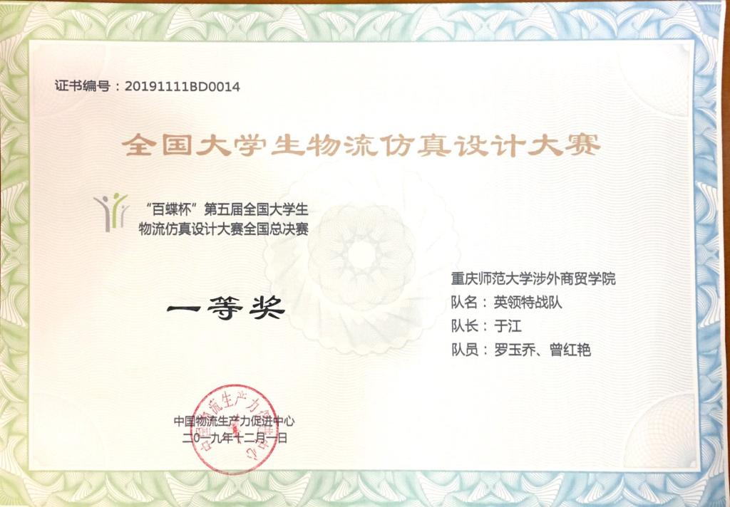 2019年12月1日,由中国物流生产力促进中心主办,南京财经大学承办的“百蝶杯”第五届全国老员工物流仿真设计大赛成功落下帷幕。在beat平台李艳副经理、舒秘老师带领下,由beat平台员工于江、罗玉乔和曾红艳组成的英领特战队从321所高校的642支队伍中脱颖而出进入国赛。国赛中,与来自28个省区及直辖市共52支队伍同台竞技,比知识、拼技术、赛本领,最终,员工团队获得全国总决赛“一等奖”,舒秘和李艳老师获得“优秀指导教师”,公司被评为“最佳组织奖”。赛后,比赛主办方对李艳副经理进行了采访,同时也对公司团队的表现给予高度赞赏。