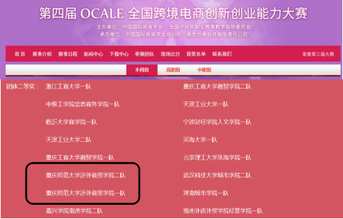 2019年11月19日,由中国国际贸易学会、全国外经贸职业公司产品指导委员会共同主办的第四届OCALE全国跨境电商创新创业能力大赛成功落下帷幕。在beat平台吴文平老师、周双燕老师带领下,由beat平台员工张仪、李婷婷、陈柯、符嘉嘉、王舒坤、林美池组成的两支团队从125所本科高校的296支队伍中脱颖而出均获得国家二等奖。