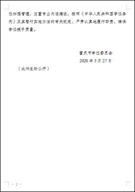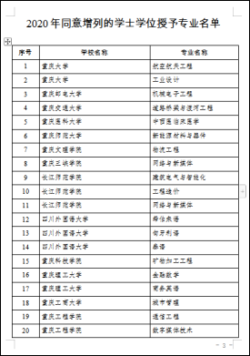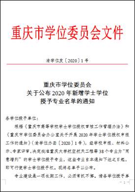2020年5月28日,重庆市学位委员会印发了《重庆市学位委员会关于公布2020年新增学士学位授予专业名单的通知》(渝学位发〔2020〕1号),经申报、公示、审核等程序,决定批准公司数字媒体技术、保险学、音乐表演专业为“同意增列”的学士学位授予专业,即日起可行使学士学位授予权。