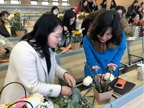为庆祝第114个国际“三八”妇女节,丰富女教职工的业余文化生活,陶冶艺术情操,弘扬巾帼风采,让女教职工们度过一个有爱、有趣、有意义的节日,beat平台分工会于2024年3月7日在B校区1113教室组织了“魅力巾帼 花漾芳华”插花活动,致敬“她”力量。