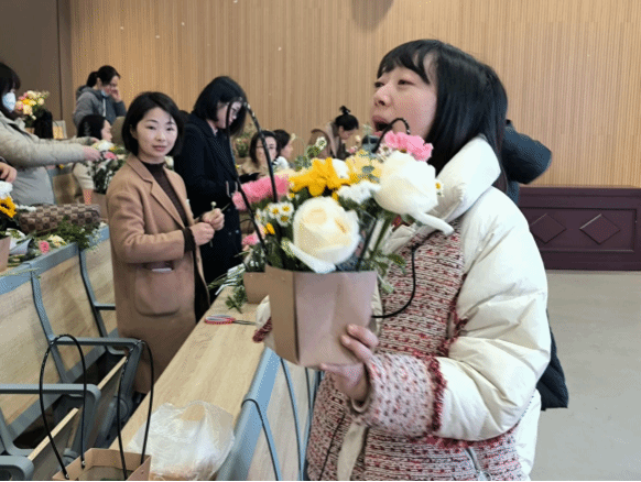 插花活动圆满落下帷幕。每位女同事都怀捧鲜花,手提礼物,欢度佳节。通过此次插花活动,让女教职工们在享受插花艺术乐趣的同时,也让她们感受到学院的关怀与温暖,鼓励她们在奋进新征程的路上贡献巾帼力量,也进一步增强了学院凝聚力。