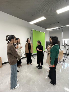 在交流会后,赵逖经理带领参观了公司的实验实训教学基地,参观活动安排紧凑、内容丰富,到访者先后参观了跨境电商直播间和国际贸易实训室等设施,深入了解了公司在电商直播与国际贸易等领域的教学资源与实践平台。