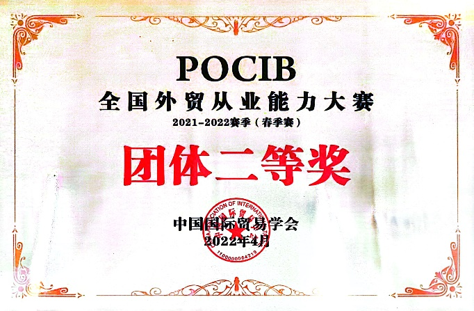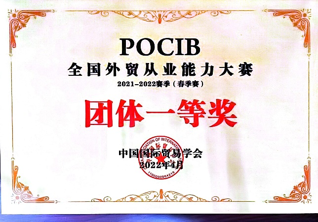 2022年4月15日上午10时,由中国国际贸易学会主办的“第十一届POCIB全国外贸从业能力大赛(春季赛)”正式开始,并于2022年4月29日上午10点正式落下帷幕,共历时十五天。公司派出两支参赛队伍参赛,在吴文平、任洁、张乃心三位老师的带领和指导下,分别荣获全国“团体一等奖”及“团体二等奖”的优异成绩,同时还有16名选手荣获个人奖项。